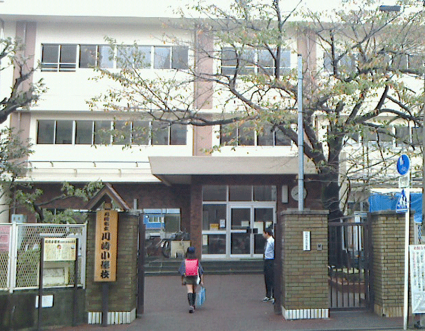 昭和6年ころの川崎市役所。この庁舎は、川崎尋常小学校の建物をそのまま市役所に転用した。 正門は現在の本庁舎裏にあたり、当時はこの通りがにぎやかだった。 (かわさきのあゆみ-写真で見る明治・大正・昭和-p54より) |